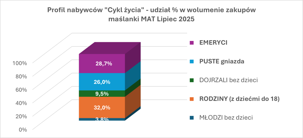 – Nabywcy maślanek to głównie grupy: „Rodziny z dziećmi”, „Puste gniazda” i „Emeryci”. Do 1,2% wzrostu wolumenu zakup maślanek w ostatnich dwunastu miesiącach bieżącego roku względem poprzedniego przyczyniły się głównie „Rodziny z dziećmi” (+3,8%), „Dojrzali bez dzieci” (+8,3%) oraz najmniejsza grupa „Młodzi bez dzieci” (+3,8%), natomiast „Emeryci” kupili mniej maślanek w analizowanym okresie (-5,8%) Wygląda na to, że maślanki są niedocenioną kategorią, co wyraża się w udziałach w zakupach pitnych produktów mlecznych, pomimo że kupuje je 50% gospodarstw domowych w Polsce, to zdecydowanie słabiej wypada na tle kefirów i jogurtów pitnych. Może to kwestia smaku, a może braku wiedzy, jednak jest to produkt warty godniejszego miejsca w naszych codziennych jadłospisach – podsumowała Senior Consultant YouGov.