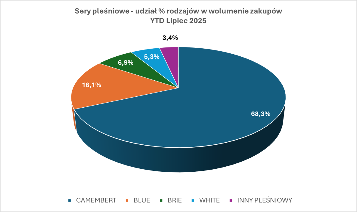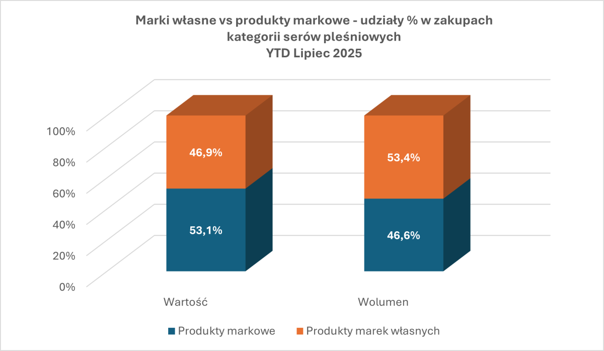 – Warto w tym miejscu zauważyć, że wzrosła liczba nabywców. Wzrost o nieco ponad 0,2 p.p. nie jest być może imponujący, ale oznacza pozyskanie ponad 32 tys. nowych nabywców. Wśród serów pleśniowych zdecydowanie największym zainteresowanie nabywców cieszy się ser camembert stanowiący bez mała 70% wolumenu zakupów dokonywanych przez gospodarstwa domowe w Polsce. Na drugim miejscu są sery „blue” (ok. 16% wolumenu zakupów), a potem ser brie odpowiadający za niecałe 7% rynku. Można powiedzieć, że w kategorii serów pleśniowych produkty markowe i produkty marek własnych sieci handlowych podzieliły się rynkiem fifty-fifty. Wartościowo dominują sery pod markami producentów, wolumenowo większe znaczenie mają produkty private label. Sklepami wybieranymi przez największą liczbę nabywców w zakupach kategorii serów pleśniowych są dyskonty. Zakupów kategorii w okresie styczeń–lipiec 2025 dokonało tam ponad 44% polskich gospodarstw domowych. Sklepy wielkopowierzchniowe są zdecydowanymi liderami w zakupach kategorii – supermarkety i hipermarkety na miejsce dokonania zakupów wybrało po ok. 15% nabywców. Udziały kanałów dystrybucji w wolumenie i wartości zakupów serów z pleśnią są pochodną popularności poszczególnych typów sklepów. Dyskonty zdecydowanie przodują, odpowiadając za ok. 60% rynku, a cały kanał wielkopowierzchniowy łącznie pokrywa ponad 90% rynku serów pleśniowych – podkreślił Grzegorz Mech z YouGov.