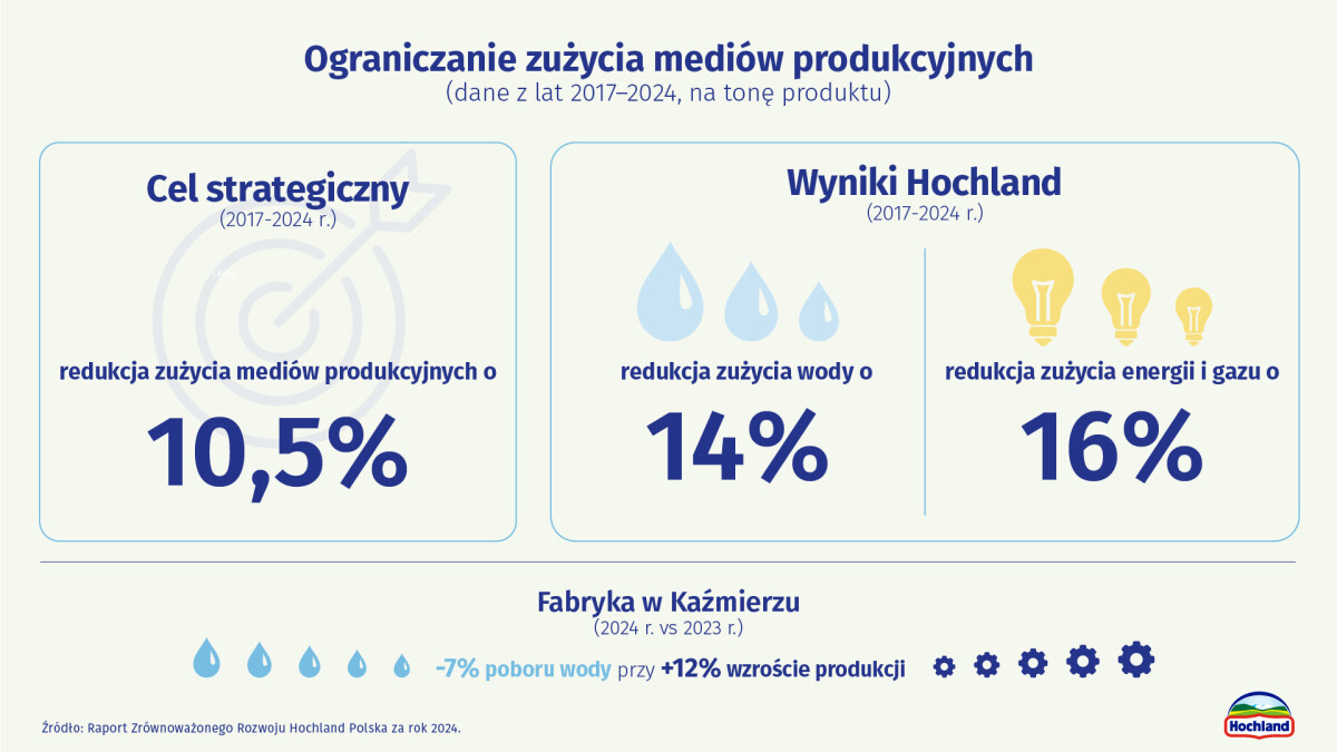 Z pewnością w dzisiejszych czasach dużym wyzwaniem dla całego europejskiego mleczarstwa jest znalezienie rozwiązań, które pozwolą utrzymać wysoki poziom standardów środowiskowych i dobrostanu, nie tracąc przy tym konkurencyjności. Hochland jako przetwórca jest świadomy wyzwań związanych z klimatem, utratą bioróżnorodności i zanieczyszczaniami. Dlatego inwestuje w poprawę efektywności, w automatyzację, redukcję odpadów i technologie energooszczędne, aby utrzymać konkurencyjne koszty produkcji pomimo wyższych standardów zrównoważonego rozwoju.