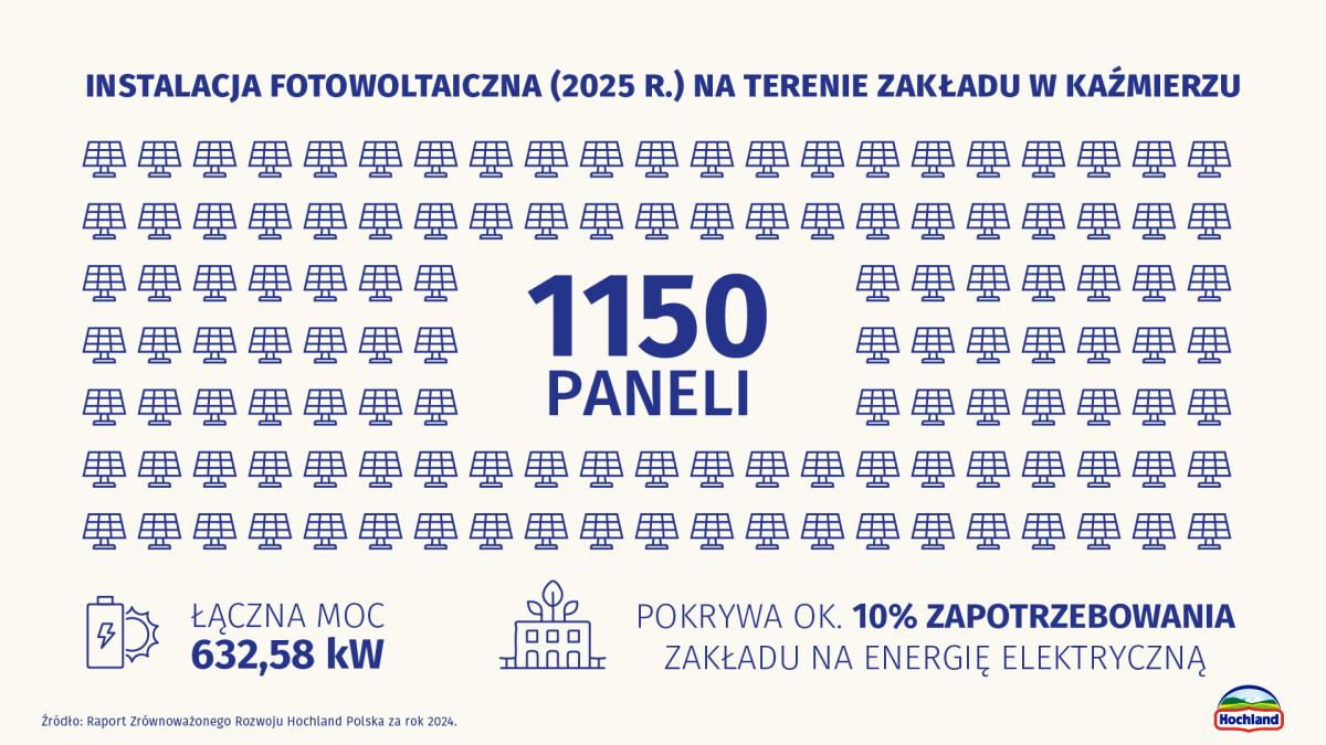 Hochland Polska, producent serów obecny w Polsce od 30 lat, posiadający zakłady w Kaźmierzu i Węgrowie, od ponad dekady konsekwentnie realizuje działania na rzecz zrównoważonego rozwoju. Firma podejmuje szereg inicjatyw mających na celu redukcję emisji CO₂e, poprawę efektywności energetycznej i wodnej oraz inwestycje w technologie przyjazne środowisku. Równocześnie rozwija odpowiedzialną produkcję mleka, wspierając gospodarstwa w obszarze dobrostanu zwierząt. Dla Hochland kluczowe jest nie tylko wykonanie założonych wskaźników strategicznych, lecz także obserwacja i analiza efektów wdrażanych działań, co pozwala definiować kolejne ambitne cele oraz dostosowywać je do zmieniających się regulacji, oczekiwań rynku i standardów środowiskowych.