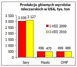 Produkcja mleka w USA rośnie nieprzerwanie od marca br., ale skala zwyżki jest raczej niewielka - po 8 miesiącach br. było to +1,3% (łącznie 58,85 mln ton) – aczkolwiek latem było to nawet blisko 3%.