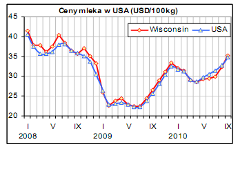 związane z wykupem stada dla rolników, którzy chcieli wydostać się z tej działalności, jednak tylko garstka z nich wykazała jakiekolwiek zainteresowanie programami. We wrześniu amerykański Instytut Polityki Żywienia i Rolnictwa (FAPRI) zauważył, że większość gospodarstw doszła już do siebie po zeszłorocznych wielkich stratach, jednakże nowe zaktualizowane prognozy cen mleka na początek 2011 roku zostały obiniżone i wynoszą obecnie 36,51USD/100 kg (w przeliczeniu