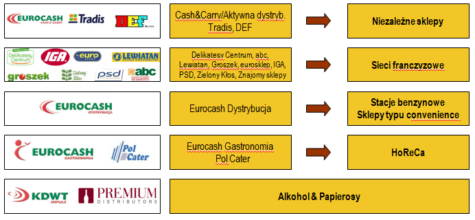 Po sfinalizowaniu połączenia z Grupą Tradis, struktura Grupy Eurocash będzie wyglądała jak na załączonym obrazie.
