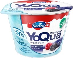 Wielu producentów jogurtów owocowych zmaga się z problemem jakim jest niezadowalająca sprzedaż jogurtów owocowych. Nowym problemem staje się zjawisko konsumenckie preferowania jogurtów naturalnych nad jogurty owocowe. Właśnie to skłoniło menadżerów w firmie mleczarskiej Emmi do stanowczych działań. Zdecydowali się wypuścić na rynek znany jogurt YoQua z hasłem: 50% dodanego cukru mniej (czyli 4,5 g), bez dodatku sztucznych słodzików. Jogurt zawiera aż 8 g białka i tylko 0,1 g tłuszczu.