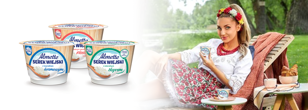Serki wiejskie są wolumenowo drugą największą kategorią rynku sera w Polsce oraz największym „białym” segmentem. Polska jest najbardziej „cottage’owym” krajem na świecie – jemy rocznie prawie 65 tysięcy ton serków wiejskich, w dodatku co roku coraz więcej. Serki wiejskie są podstawą codziennej diety Polaków – doceniamy to, że są naturalne, lekkie i zdrowe, do tego łatwo i szybko można się nimi najeść. Widzimy wiele okazji, zarówno w domu, jak i poza nim, aby sięgnąć po serek wiejski – właściwie przez cały dzień. Polacy jedzą serki wiejskie zarówno na śniadanie, jak i drugie śniadanie, lunch, kolację czy przekąskę między głównymi posiłkami. W tak dużej, rosnącej i lubianej kategorii nie mogło zabraknąć jednej najbardziej znanych i lubianych marek serowych, czyli Almette.