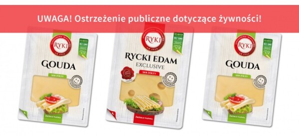 Główny Inspektor Sanitarny poinformował 13 września o wycofaniu jednej partii sera żółtego Gouda w plastrach oraz jednej partii sera żółtego Rycki Edam w plastrach wyprodukowanych przez mleczarnię Ryki (SM) ze względu na wykrycie bakterii Listeria monocytogenes. To drugie takie ostrzeżenie po sytuacji z połowy sierpnia, kiedy Ryki (SM) musiały wycofać ser Gouda, 135 g, plastry, numer partii: 290351; z datą minimalnej trwałości: 06.09.2019.