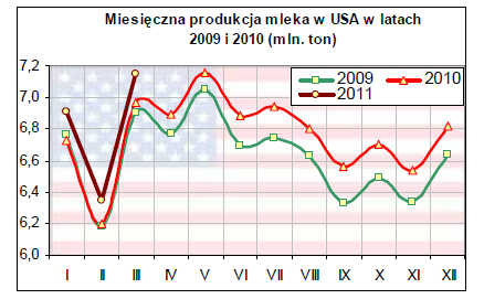 pokażWedług najnowszych danych USDA produkcja mleka w USA obliczana na podstawie 23 wiodących w tej branży stanów w marcu br. osiągnęła poziom 7,15 mln ton, tym samym odnotowano rekordową sezonową zwyżkę produkcji mleka w skali miesięcznej w tym kraju (12,58%).