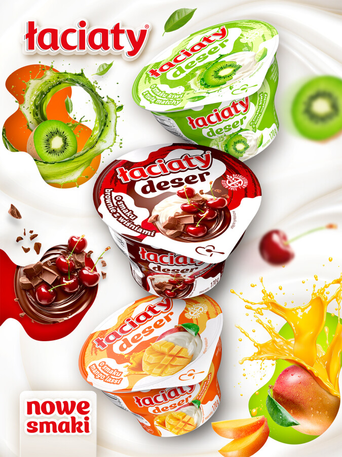 Wraz z nadejściem jesieni do rodziny deserów Łaciatych dołączają trzy kolejne pyszne warianty o smaku: brownie z wiśniami, kiwi z nutą matchy oraz mango lassi. Wszystkie nowości, stworzone na bazie kremowej maślanki powstałej z najlepszego polskiego mleka, dzięki intrygującym dodatkom tworzą wykwintne kompozycje smakowe, idealne dla każdego entuzjasty zdrowych deserów.