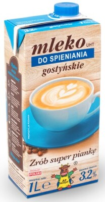 Mleko UHT do spieniania gostyńskie 3,2% jest doskonałe do przygotowania mlecznej pianki w ekspresach ciśnieniowych lub z wykorzystaniem ręcznego spieniacza.