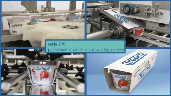 Seria 770 to automat do grupowania i pakowania produktów w kartony typu sleeve. Maszyny tej serii są specjalnie zaprojektowane do pakowania kubków o różnych kształtach i rozmiarach, z zastosowaniem różnych układów w kartonie. Oprzyrządowanie maszyny zapewnia maksymalną efektywność i wydajność urządzenia, a jego modułowa konstrukcja i zastosowanie sterowania PLC umożliwia łatwą zmianę oprzyrządowania na inny rozmiar oraz kształt wykroju.