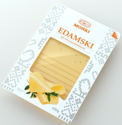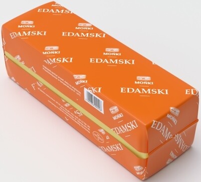 Akcentem wyróżniającym ser Edamski od Mońki (MSM) stała się barwa pomarańczowa. Opakowania plastrowane, tak jak w przypadku pozostałych rodzajów sera, zostały oznaczone indywidualnym wzorem. Zastosowanie białych napisów na blokach sera, mocno wyeksponowało logotyp i nazwę produktu.