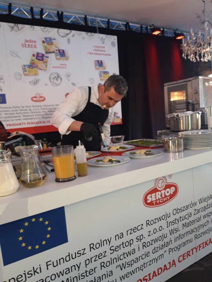 W dniu 18 marca br. w Hucie Paprockiej w Tychach odbyły się pokazy kulinarne, które prowadził uczestnik drugiej edycji MasterChefa – Julien Secher. Na bazie serków topionych Gouda i Złoty Ementaler, oznakowanych certyfikatem „Jakość Tradycja”, przygotowane zostały takie pyszne potrawy jak: przystawka ze szparagami, danie główne kaczka oraz na deser – gruszka w sosie serowo-karmelowym.