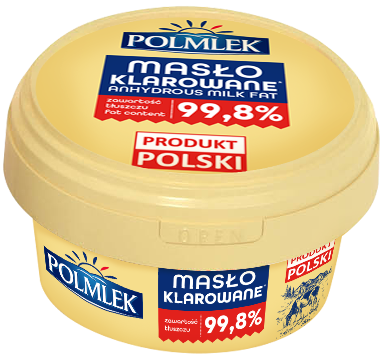 Polmlek wprowadza na rynek masło klarowane. Jest to wysokiej jakości produkt niezbędny zarówno w kuchni domowej, jak i w profesjonalnej gastronomii. Masło klarowane Polmlek o zawartości tłuszczu 99,8%, pozbawione białka i wody, rozgrzewa się do temperatury 250°C, czyli znacznie wyższej niż większość używanych do smażenia olejów. W przypadku zwykłego masła punkt dymienia to już 100°C. Masło klarowane wydobywa wspaniały smak ze smażonych na nim potraw. Jest to najzdrowszy tłuszcz mleczny. Ponieważ nie zawiera białka i cukrów mlecznych, może być spożywany przez osoby na diecie bezmlecznej oraz bezlaktozowej.