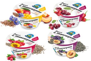 Jogurty z dodatkiem mascarpone to kolejna ciekawa i jednocześnie całkiem nowa propozycja rynkowa. Takie produkty pojawiają się aktualnie w ofercie mleczarni Łowicz (OSM) oraz Müller Polska. Linia jogurtów z mascarpone Łowicz (OSM) jest ciekawa ze względu na unikalne smaki wsadów owocowych (śliwka-chia, wiśnia-chili, malina-żurawina-słonecznik, brzoskwinia-mango-siemię lniane). W tej samej kategorii Müller oferuje produkty w klasycznych smakach tj. truskawka, wiśnia, brzoskwinia i morela. Delikatne w smaku serki o ulubionym waniliowym lub czekoladowym smaku z dodatkiem owoców są oferowane przez m.in. mleczarnie Jana (ŚSM) lub Jogo (ŁSM).