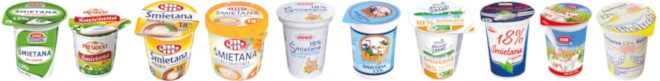 Wybrany asortyment śmietan na polskim rynku zawiera zestawienie tabelaryczne nr 2. Na polskim rynku śmietany o relatywnie niskiej zawartości tłuszczu – 10-12% – oferują m.in. Bychawa (OSM), Grupa Mlekovita, Łowicz (OSM). Popularnym typem są śmietany zawierające 18% tłuszczu i są praktycznie w ofercie każdego z producentów. Śmietany o 30% zawartości tłuszczu oferują m.in. Lactalis Polska i Grupa Mlekovita.