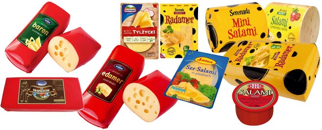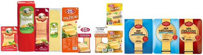 Spomlek (SM) wśród swoich specjałów szwajcarsko-holenderskich poleca słynne sery: Radamer i Złoty Radamer. Sery te stały się synonimem jakości polskiego serowarstwa i doskonale prowadzonego procesu produkcji. Inny potentat serowy: mleczarnia Mlekpol (SM) oferuje sery Salami, Tylżycki i Królewski z Kolna w plastrach 150 g. Zwłaszcza ten ostatni słynie z oryginalnego smaku i jest ceniony przez konsumentów.