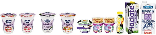 Produkty mleczne, które w swoim składzie nie zawierają laktozy to odpowiedź na rosnące zapotrzebowanie konsumentów, zmagających się z problemem nietolerancji laktozy. Niestety zaburzenie to staje się coraz bardziej powszechne wśród społeczeństwa i może dotyczyć nawet 25% Polaków. Podstawową formą leczenia tej dolegliwości jest odpowiednia dieta, która polega na wyeliminowaniu spożycia produktów zawierających laktozę. Wielu konsumentów ceni sobie jednak asortyment nabiałowy i nie chce z niego rezygnować. Jako producent odpowiedzialny za jakość życia konsumentów zdecydowaliśmy, że musimy wyjść naprzeciw rosnącym potrzebom. Chociaż wiązało się to z koniecznością dodatkowych inwestycji technologicznych (szczególnie kosztownych w przypadku mleka UHT), uzyskaliśmy dzięki temu produkty najwyższej jakości o doskonałym smaku, które zostały również docenione przez konsumentów. Do naszej oferty „bez laktozy” wprowadziliśmy grupę podstawowych produktów nabiałowych, które są bardzo chętnie wybierane przez osoby z problemem nietolerancji pokarmowej. Szerokość asortymentu oraz jakość wytwarzanych w tej technologii produktów w Mlekpolu powoduje, że partnerzy handlowi, zarówno polscy jak i zagraniczni, którzy popierają ten kierunek działania, wykazują zainteresowanie nowościami i chętnie korzystają z naszych propozycji. Obecnie w charakterystycznej fioletowej szacie graficznej (standardowej dla tego typu produktów) posiadamy w ofercie: Mleko Łaciate bez laktozy o zawartości 1,5% tł. oraz 3,2% tł., ponadto żółte sery w plastrach (Edam, Gouda i Złoty Mazur), Twaróg Mazurski Smak, serek wiejski Łaciaty, a także jogurty pitne marki Łaciate, dostępne w ciekawych i niepowtarzalnych kompozycjach smakowych: ananas-kokos, jeżyna-malina oraz truskawka-czarna porzeczka. Warto również podkreślić, że aktualnie jesteśmy w trakcie realizacji nowych projektów dla produktów, które wkrótce pojawią się na rynku. Kolejne propozycje wynikają z obserwacji rynku i konkretnego zapotrzebowania konsumentów krajowych i zagranicznych oraz informacji uzyskiwanych od naszych partnerów handlowych.