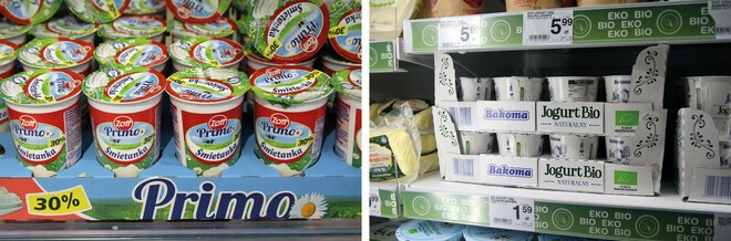 Tektura falista z której wykonane są opakowania Shelf-Ready wpisuje się w ekologiczne trendy opakowaniowe, które mają być zdatne do recyklingu. Bardzo dobrym sposobem na skuteczne prezentowanie produktów i nawiązanie komunikacji z klientem są kartony regałowe z technologią zrywanej perforacji, która sprawia, że karton staje się smukłą, ustawną tacką regałową. Tacki na jogurty i produkty mleczne, zwane też platonami to kolejne rozwiązanie na prezentowanie produktów. Takie tacki ułatwiają umieszczanie produktów jednego rodzaju czy mieszanie go na przykład w obrębie smaku (jak choćby w przypadku jogurtów i deserów o różnych smakach), a zagłębienia na kubeczki stabilizują je, chronią przed przewracaniem się i chaosem na półce, który może skutkować przerwaniem ciągłości platynki i rozlaniem się produktu i związanymi z tym stratami. Możliwe jest także zastosowanie opakowań tekturowych, które mają system sprzedaży na kilku poziomach z opatentowanym system poziomowym wysuwania towaru gwarantującego dobrą, wielopoziomową widoczność produktu. Opakowanie tego typu jest bardzo dobrze zorientowane na wspieranie sprzedaży przyczyniając się do umieszczenia produktu w centrum uwagi kupującego, skracając czas wyboru produktu i łatwy do niego dostęp. Takie rozwiązania przyczyniają się ponadto do ograniczenia ilości zużycia materiałów do produkcji funkcjonalnych opakowań. Podniesienie zróżnicowania widoczności produktów na regale sklepowym czy ekspozycjach daje możliwość uporządkowania prezentowanego asortymentu (zwłaszcza gdy w jednym opakowaniu zbiorczym znajduje się kilka typów produktu różniących się smakiem), skrócenia czasu wyszukiwania produktu czy promocyjnego prezentowania produktu.