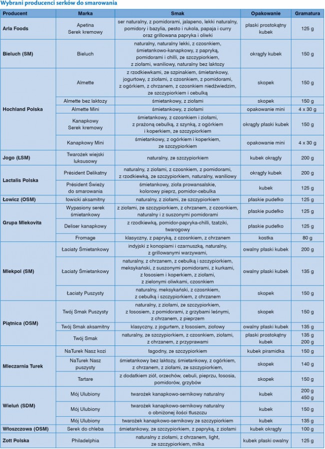 Serki do smarowania to jedna z ciekawie rozwijających się kategorii. Producenci serków do smarowania kuszą nas nie tylko wygodą ich użycia, ale także szerokim wachlarzem oryginalnych smaków oraz ciekawymi koncepcjami zastosowania. Serki do smarowania pozwalają na ciekawe urozmaicenie codziennych śniadań i kolacji oraz na stworzenie smakowitych, szybkich w konsumpcji przekąsek. Mogą także wzbogacać smak innych potraw.