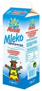 - Minila – mleko pasteryzowane 2,5% – 1 l wytwarzane przez firmę Gostyń (SM)