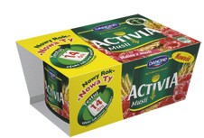 - Jogurt Activia (Danone); (smaki: śliwka, wiśnia, truskawka, jagoda – nowość), jogurt Activia musli (smaki: jabłko, malina, brzoskwinia, naturalny), Activia do picia (smaki: suszona śliwka, morela-suszona morela, truskawka-kiwi, truskawka-poziomka, wiśnia-czarna porzeczka) zawierają szczepy probiotyczne Bifidobacterium ActiRegularis DN-173 010, które pozytywnie wpływają na skrócenie czasu pasażu jelitowego.