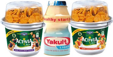 Firma Danone oferuje także jogurt probiotyczny Activia. W przypadku Activii wykorzystano przekaz marketingowy skierowany głównie do kobiet w różnym wieku. Activia w butelkach skierowana jest do młodych aktywnych kobiet, zaś Activia w kubeczkach do jedzenia łyżeczką – dla kobiet po 50. roku życia. Z kolei Activia z dodatkiem musli w plastikowym toperze dedykowana jest jako przekąska na śniadania. Activia dostępna jest o smakach: