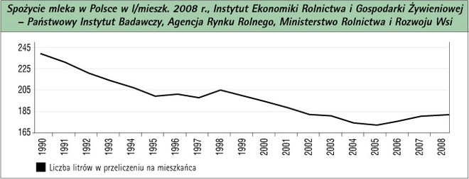 Polska jest jednym z największych producentów mleka i jego przetworów w Europie, jednak jego spożycie przez rodzimych konsumentów wciąż jest mniejsze, niż średnia w UE. Przeciętny Polak konsumuje 181 l mleka i przetworów mlecznych (wyrażonych w ekwiwalencie mleka) rocznie, podczas kiedy statystyczne spożycie mleka na osobę w całej UE wynosi ok. 350 litrów rocznie.