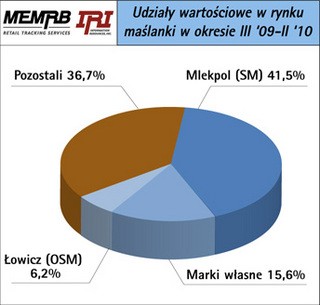 Segment maślanek zdominowany jest przez mleczarnię Mlekpol (SM), której marka Mrągowska zdecydowanie góruje nad konkurencją (41,5% rynku). Pod tym względem jest to sytuacja wyjątkowa, rzadko spotykana w innych kategoriach produktowych. Konkurenci znajdują się daleko za marką z Grajewa. Łowicz (OSM), Krasnystaw (OSM) i Włoszczowa (OSM) sprzedają od około 4,5 do 7% całego wolumenu. Ich pozycja i tak wyróżnia ich z rzeszy kilkudziesięciu oferentów, którzy próbują handlować produktami z tej kategorii. Największy potencjał w tej grupie reprezentuje Łowicz (OSM) obecnie 6,2% wartości rynku według agencji MEMRB (dane za okres III 2009-II 2010), Włoszczowa (OSM), stosunkowo najmniejszy zaś – Krasnystaw (OSM). Do rywalizacji włączają się także Radomsko (OSM) i Kościan (OSM).