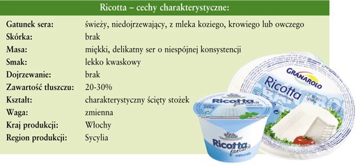 Ricotta jest popularnym składnikiem wielu tradycyjnych typowo włoskich potraw, tj. lasagnia, ravioli, manicott lub naleśniki. W domach włoskich ricotta podawana jest dzieciom z dodatkiem cukru, cynamonu lub czekolady. Gładka w konsystencji i łagodna w smaku jest wykorzystywana zarówno do potraw słodkich jak i pikantnych. Ricottę stosuje się powszechnie w tradycyjnej włoskiej potrawie – Cannelloni, gdzie do nadzienia rurek używa się serka riccotta i szpinaku. Również włoskie kopytka Gnocchi nie mogą obyć się bez dodatku ricotty. Ser ten nadał również nazwę słynnemu sernikowi – Torta di ricotta (czyli sernik z ricotty). Smakowicie przedstawiają się także Malfatti (czyli kluski kładzione z ricotty z orzechami włoskimi) oraz omlety z masą z aromatycznego pesto i delikatnego serka ricotta. Suszona ricotta typu cecca jest twardą i zwartą odmianą, którą można trzeć na tarce i stosować jako dodatek smakowy.