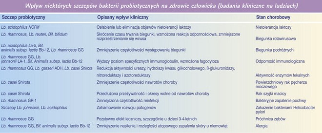 Według definicji WHO probiotyki są to żywe komórki mikroorganizmów, które podawane w odpowiedniej liczbie wykazują korzystne działanie na ludzki organizm. Cechą specyficzną szczepów probiotycznych jest ponadprzeciętny wpływ ich żywych komórek na organizm człowieka, np. zdolność do przemieszczania się w stanie żywym do jelita grubego, osiedlania się w nim i rozmnażania. Stosowanie probiotycznych szczepów bakterii mlekowych w otrzymywaniu mlecznych produktów fermentowanych lub niefermentowanych ma wpływ na wartość odżywczą wyrobów. Powoduje wzrost zawartości lub powstanie nowych substancji o znaczeniu żywieniowym, zwiększenie gęstości składników odżywczych i lepszą ich przyswajalność, hydrolizę laktozy (istotne dla osób z nietolerancją laktozy) lub niekorzystnych frakcji białka (istotne dla alergików), nadanie nowych cech sensorycznych lub wzbogacenie produktów w witaminy.