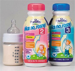 Znaną i wygodną formą mleka jest Candia Mamo, rosnę! Będące serią mleka modyfikowanego dla dzieci od 1. do 3. roku życia. Candia Polska ma również w swoim portfolio mleko Junior dla młodzieży oraz ciekawą propozycję: mleko kozie tłuste i półtłuste. Mleka dla dzieci firmy Candia sprzedawane są w wygodnych kartonikach z zakrętką oraz w atrakcyjnych butleczkach również z nakrętką. Na tej samej półce znajdziemy też propozycję Bebiko Junior Nutricia Polska, oczywiście również w wielu wersjach zależnie od wieku malucha, oraz Mleko modyfikowane firmy Nestlé NAN HA. Nestlé ma w swojej ofercie także mleko dla niemowląt po 12. miesiącu, o smaku waniliowym.