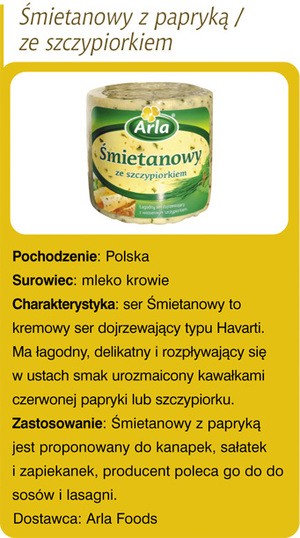 W czym mogą dziś wybierać konsumenci? Paleta możliwości jest coraz większa, a wśród serów z dodatkami prym wiodą sery z pieprzem, szczypiorkiem, ziołami oraz papryką. Do najbardziej wyszukanych serów należą te z dodatkiem pamarańczy, oliwek, czarnego bzu lub czerwonego wina. Wśród firm, które wytwarzają w Polsce tego typu wyroby znajdują się: Arla Foods, Mlekpol (SM), Mlekovita (GK) i Łowicz (OSM). Wszystkie one są produkowane z mleka krowiego i są coraz częściej wybierane z racji atrakcyjnej ceny.