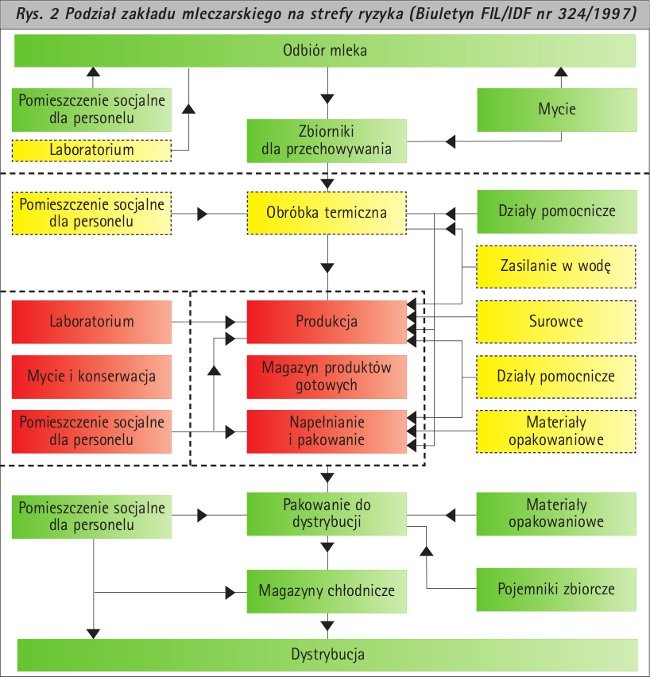Model podziału zakładu mleczarskiego, zaproponowany przez IDF (Międzynarodowa Federacja Mleczarska), na strefy ryzyka przedstawiono na rys. 2.