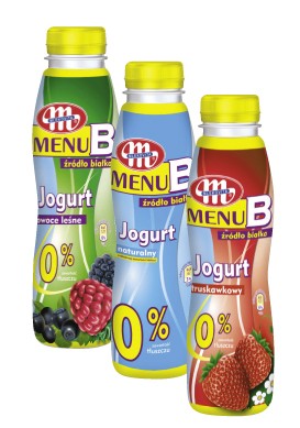 Konsumenci mogą również od niedawna znaleźć na sklepowej półce nowość firmy Mlekovita (GK). Przedstawia nam ona nową linię atrakcyjnie wyglądających produktów o nazwie Menu B. Jest to propozycja dla klientów, którzy dbają o swoją sylwetkę; oferuje nam serię nowoczesnych, funkcjonalnych produktów niskotłuszczowych, zawierających dużą ilość naturalnego białka, które pomaga redukować zbędne kilogramy. W wachlarzu Menu B znajdziemy również gaszące pragnienie jogurty pitne 0% tłuszczu, które dzięki zawartości szczepów kultur probiotycznych poprawiają naszą odporność i działanie przewodu pokarmowego. Produkt (sprzedawany o smakach naturalnym, truskawka i owoce leśne) ma obniżoną zawartość laktozy, co również będzie sprzyjać konsumentom cierpiącym na jej nietolerancję.