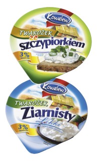 Do grupy nowoczesnych serków ziarnistych można także zaliczyć serki wiejskie o obniżonej zawartości tłuszczu, dostępne w portfolio firm: Piątnica (OSM), Łowicz (OSM), Mlekovita (GK), Sokołów Podlaski (OSM). Warto zwrócić uwagę na bardzo atrakcyjną cenowo i wizualnie ofertę mleczarni Kowalew-Dobrzyca (OSM). Mleczarnia ta oferuje twarożek ziarnisty ze szczypiorkiem oraz naturalny w wersji light (3% tłuszczu) z nowym, odświeżonym logo.