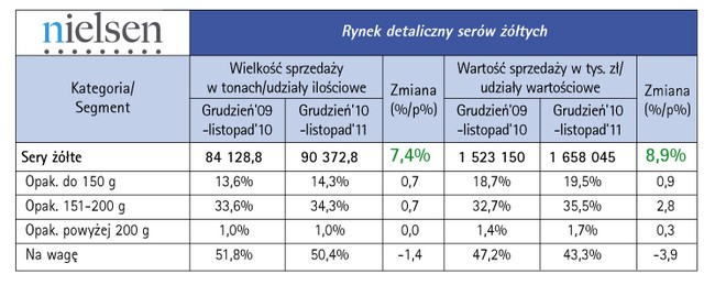 Sery żółte dojrzewające to drugi po serach twarogowych segment rynku w Polsce. Od kilku lat rynek ten w naszym kraju wykazuje wzrost i jest mocno rozdrobniony – sery dojrzewające ma w swojej ofercie wielu producentów, a łączna oferta przekracza kilkaset produktów. Spośród dostępnych serów dojrzewających konsumenci nadal wybierają głównie sery na wagę. Tendencja ta zmienia się na korzyść serów w plastrach oferowanych przez producenta w opakowaniach z opcją otwórz-zamknij.