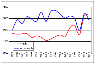 Rynek mleka po silnym wzroście cen w latach 2007-2008, a następnie ich głębokim załamaniu w 2009 r. szybko powrócił do tendencji wzrostowych. W drugiej połowie 2009 r. ceny trwałych przetworów mlecznych na rynkach światowych zaczęły szybko rosnąć pod wpływem rosnącego popytu głównie ze strony Chin i krajów Dalekiego Wschodu, Rosji, ale również krajów eksportujących ropę naftową. Ceny światowe artykułów mlecznych w latach 2010-2011 ponownie osiągnęły wysokie poziomy, a ceny masła i pełnego mleka w proszku nawet przekroczyły poziom z poprzedniej hossy, a obroty handlowe dynamicznie rosną (rys.. 1, 2).