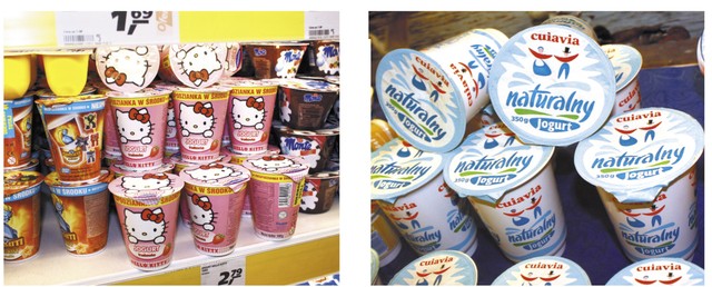 Dawno, dawno temu, polski bezbarwny rynek jogurtów zdobyli bez wielkich ceregieli giganci rynku europejskiego: Danone i Zott. Tu nie było oporu ze strony równorzędnych konkurentów, bo polscy obrońcy i tak nie mieli ani pieniędzy, ani broni (technologii, produktów i rozbudowanego aparatu handlowego). Pozostałością tej bezkrwawej rozprawy z polskimi producentami jogurtu jest dziś dominacja firm Danone i Zott. Jaskrawo widoczna jest w osiedlowym sklepie. Tu nie uświadczy się innego jogurtu niż Jogobella, Activia lub ale Owoc! (może tu i ówdzie znajdziemy Milko albo Polski). Przy masowej, wylewającej się z każdego kanału TV natarczywej reklamy, reakcją klienta skazanego na jedną lub dwie marki w małym sklepiku jest znużenie, irytacja, a w końcu poszukiwanie pilota i tańszego sklepu z większą ofertą.