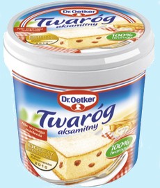 Dr. Oetker jako specjalista w pieczeniu oferuje Twaróg Aksamitny, który nie wymaga mielenia, bez dodatku żadnych ulepszaczy i zagęstników. Jednolita, gładka konsystencja i naturalny, kwaskowy smak Twarogu Aksamitnego Dr. Oetkera sprawiają, że najpopularniejsze polskie ciasto – sernik będzie puszysty i delikatny. Najwyższa jakość Twarogu Aksamitnego Dr. Oetkera doceniana jest szczególnie w okresach bożonarodzeniowym i wielkanocnym, kiedy konsumenci zwracają większą uwagę na jakość produktów do pieczenia.