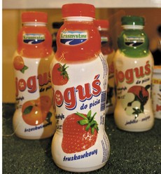 Jogurty Polskie to marka mleczarni Mlekovita (GK). Seria jogurtów Polskich oprócz naturalnych żywych kultur bakterii jogurtowych zawiera także kultury probiotyczne – Lactobacillus acidophilus LA-5 i Bifidobacterium BB-12, które zasiedlają przewód pokarmowy człowieka, blokują miejsce bakteriom i wirusom chorobotwórczym. Mają one właściwości antybakteryjne, zapobiegające zakażeniu przez większość popularnych wirusów i bakterii, a także dostarczają łatwo przyswajalnego wapnia i fosforu, zapobiegając osteoporozie. Pomagają przy zaparciach, wzdęciach, stanach zapalnych jelit. Mlekovita (GK) proponuje również jogurty pitne nowej generacji pod marką Polskie, w 400 g butelkach. W portfolio do wyboru mamy m.in. aloes, żurawina z granatem, liczi z limonką. Linię pitnych jogurtów probiotycznych pod marką Joguś oferuje również firma Krasnystaw (OSM), która dodaje do swoich produktów bakterie BB-12 (Bifidobacterium lactis) oraz La-5 (Lactobacillius acidophilus), dzięki czemu produkty te wykazują działanie prozdrowotne, m.in. odbudowują florę bakteryjną jelit i korzystnie wpływają na proces trawienia, poprawiają przyswajanie laktozy przez osoby cierpiące na jej nietolerancję. Produkty występują butelkach 500 g z nakrętką. Jogurt pitny Joguś oferowany jest m.in.: o smakach: brzoskwiniowym, truskawkowym, jagodowym, jabłkowo-miętowym, waniliowym i żurawinowym.