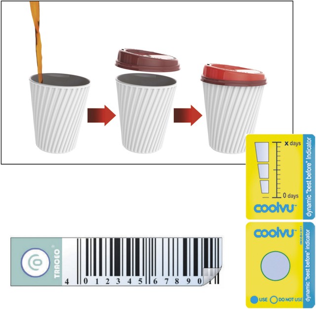 Ciekawym rozwiązaniem jest indykator „Traceo” opatentowany przez francuską firmę Cryolog. Traceo jest samoprzylepną etykietą nowej generacji – integratorem czasowo-temperaturowym-programowanym w zależności od charakterystyki monitorowanych produktów. Etykieta składa się z żelu i mikroorganizmów, a swoją barwę zmienia z przezroczystej na intensywnie fioletową w chwili, gdy produkt staje się niezdatny do spożycia. Taka etykieta znajduje swoje zastosowanie w monitorowaniu artykułów spożywczych w operacjach logistycznych. Podobne rozwiązanie oferuje izraelska firma FreshPoint Quality Assurance, która opracowała indykatorowe czujniki temperatury dla łatwo psujących się produktów. Można znaleźć je na opakowaniach, mięsa, warzyw, owoców, kanapek lub innych wyrobów garmażeryjnych – zarówno w sklepach jak i w cateringu.