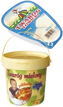 Twaróg łowicki na sernik (wiaderko 1 kg, 42 dni przydatności do spożycia), twaróg sernikowy (wiaderko 1 kg, 42 dni przydatności do spożycia), twaróg mielony półtłusty (wiaderko 1 kg, 14 dni przydatności do spożycia), to wysokiej klasy propozycje mleczarni Łowicz (OSM).