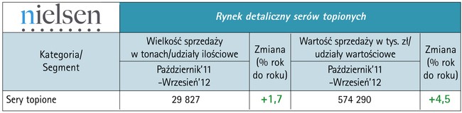 Sery topione, jako produkt kanapkowy, teoretycznie nie mają konkurencji. Rozejrzyjmy się po ich półce cenowej: wędlina i pasztet nie wzbudzają zaufania, pasty do smarowania, produkty seropodobne, w których tłuszcz zwierzęcy zastąpiono tańszym, roślinnym też nie do końca spełniają oczekiwania. W takim towarzystwie ser topiony nie powinien martwić się o swoją pozycję. Tyle teoria, bo w praktyce rynkiem zaczyna zarządzać oferta dyskontowa, a w tej sytuacji nie można liczyć na lojalność kupującego. Obecny i odczuwalny w domowych budżetach kryzys ekonomiczny mógłby zapoczątkować złotą erę sera topionego. Tani produkt, zróżnicowana kategoria, długi okres przydatności do spożycia, uzyskany poprzez pasteryzację w wysokiej temperaturze, znacznie szersze niż jedynie kanapkowe zastosowanie w kuchni: jako baza lub dodatek do zup, sosów, dobrze sprawdza się jako zastępnik smarowidła do kanapek z wędliną. Jak się jednak okazuje, kryzys nie tylko uruchomił w konsumentach oszczędność, ale również sprawił, że stali się prawdziwymi łowcami okazji. Mówi się, że trudno liczyć na lojalność nabywcy zamożnego, sytuacja rynkowa dowodzi, że jeszcze trudniej o oddanie klienta z cieńszym portfelem. Sieci dyskontowe wbrew obiegowej opinii nie są rozwiązaniem jedynie dla najuboższego konsumenta, niska cena, bogata oferta i dobra jakość produktu przyciągnęły również klienta o średnich dochodach i wszystko wskazuje na to, że ta tendencja się utrzyma. Wybieranie tanich produktów z wyższej półki w dyskoncie, jest z jednej strony szansą dla wolumenu, ale firmy rzadko są usatysfakcjonowane wartością sprzedaży, gdyż potrzeba im znacznie większego wolumenu, aby utrzymać poziom zysku. Producenci, którzy nie podjęli współpracy z dyskontami i nie stworzyli marek własnych obserwują również spadki, gdyż to dyskonty w największym stopniu generują wzrost sprzedaży spośród wszystkich kanałów dystrybucji. Dlatego dosyć naturalną drogą było przystąpienie do tego nowoczesnego kanału sprzedaży takich firm jak: Hochland Polska, niekwestionowany lider kategorii serów topionych, Grupa Polmlek, Mlekovita (GK).