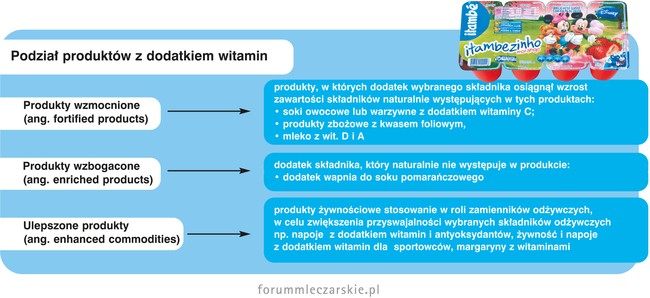 Produkty z dodatkiem witamin należą do modnej ostatnio grupy produktów z segmentu tzw. żywności funkcjonalnej, w której mieszczą się m.in. produkty wzbogacone lub fortyfikowane. Wprawdzie żywność funkcjonalna nie jest zdefiniowana w żadnym powszechnie obowiązującym akcie prawnym – zarówno na poziomie krajowym jak i unijnym kilkakrotnie próbowano podejść do jej zdefiniowania. Krajem, który zapoczątkował ten trend rozwoju takiej żywności była Japonia.