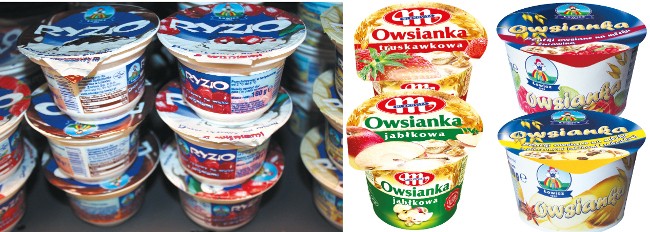 Kolejną kategorię tworzą desery o konotacji śniadaniowej. Do nich zaliczamy m.in. kaszki z kaszy manny, desery na bazie białego ryżu i nową kategorię: desery typu owsianka. Przykłady kaszki manny znajdziemy w ofercie takich firm jak Zott Polska (Smakija, Serduszko), Dr. Oetker (Deli), Łowicz (OSM) oraz Czarnków (OSM). W ramach marki Smakija oprócz kaszek klasycznych znajdziemy także wersje z sosami owocowymi oraz w wersji light. Pewną wariacją na temat deserów śniadaniowych są produkty na bazie ryżu. Do tych posiadających najlepszą dystrybucję należą produkty firm: Zott Polska: Belriso; Łowicz (OSM): Ryzio; Czarnków (OSM): deser ryżowy Czaruś oraz Müller: deser Riso. Desery te występują z różnymi dodatkami: sosem cynamonowym, pieczonym jabłkiem, truskawkami i wiśniami. Do asortymentu ostatnio dołączyła też owsianka. Obecnie produkują je: Danone (Activia) oraz Łowicz (OSM).