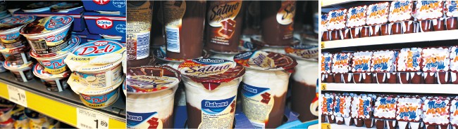 Półka z deserami to raj dla łasuchów. Miłośnicy słodkich specjałów mogą wybierać w pokaźnej ofercie. Najbardziej rozbudowaną sekcją jest grupa deserów mlecznych nieubijanych, które reprezentowane są poprzez produkty typu pudding, różnego typu desery jogurtowe oraz wszelkiego rodzaju galaretki mleczne. Desery tego typu są wytwarzane z mleka, śmietanki, cukru z dodatkiem żelatyny i substancji emulgujących. Dodawane do deserów różne dodatki smakowe (tj. kakao, wanilia, proszek owocowy) są elementami decydującymi o końcowym charakterze wyrobu gotowego (Smakija). Desery te charakteryzują się bogactwem form wizualnych. Mogą być trójwarstwowe (Smakija), skręcone w warstwach, w postaci palm (Paula). Do deserów tych dodaje się sosy na górnej lub dolnej powierzchni (Bakoma Satino Gold, Zott Pudding z sosami). Mogą być ozdabiane piankami z bitej śmietany (Bakoma Satino, Dr. Oetker Paradis i Deli, Zott Deser z koroną lub Olma Dezert z bitą śmietaną).