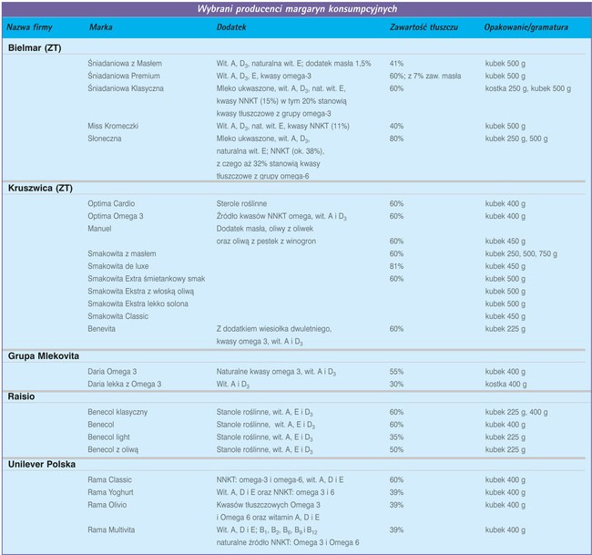 Obecnie coraz więcej firm wzbogaca swoje produkty w kwasy omega 3. Do producentów, którzy posiadają takie produkty w swoim portfolio należą m.in.: Grupa Mlekovita (Daria), Unilever (Flora z omega 3 i 6, Rama Olivio), Kruszwica (Benviva), Bunge/Kruszwica (Optima Omega 3).