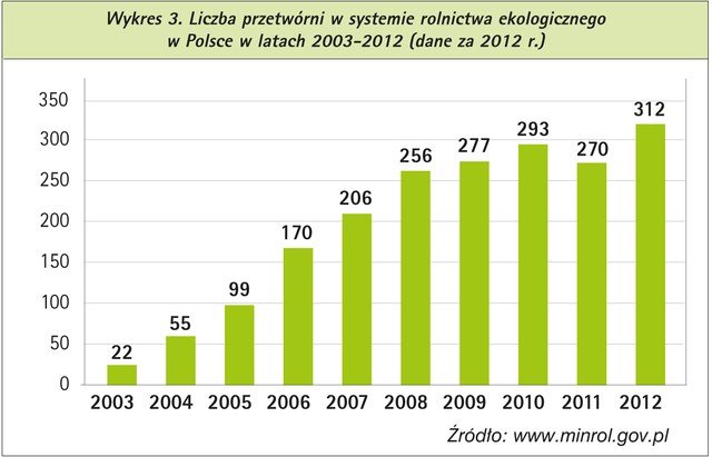 Z załączonych zestawień wynika, iż rolnictwo ekologiczne posiada pewien systematycznie rozwijający się potencjał. Coraz więcej świadomych rolników i przetwórców angażuje swój czas oraz energię. Oczywiście ten dynamiczny rozwój wpływa znacząco na rozwój podaży naturalnych ekologicznych produktów, w związku ze wzrastającą świadomością zdrowotną konsumentów. Rośnie też liczba przetwórni. W 2004 roku było to 55 zakładów, obecnie jest to blisko 312 punktów. Jednak jak podają specjaliści od tego segmentu to wciąż za mało i należy się spodziewać systematycznego wzrostu liczby tego typu przedsiębiorstw.