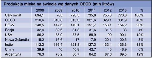 Dlatego też prognozy wskazują, iż do 2018 roku wraz ze stopniowym wychodzeniem z kryzysu ekonomicznego wzrośnie zapotrzebowanie na produkty mleczarskie szczególnie z segmentu „premium”, innowacyjnych produktów z tzw. wartością dodaną oraz produktów o nowych unikatowych smakach. Według prognoz OECD w 2022 roku wielkość produkcji mleka w USA wzrośnie do poziomu 103,4 mld litrów (wzrost o 14,7% w stosunku do roku 2013).
