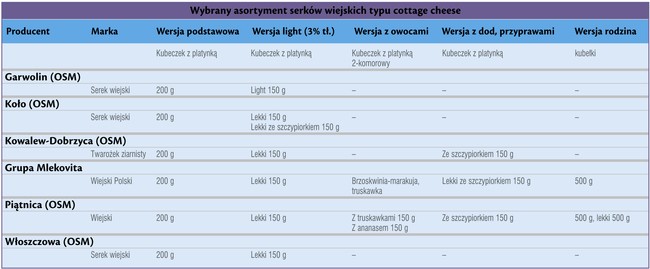 Serek wiejski typu cottage cheese swoją karierę rozpoczął w 1992 roku, kiedy to po raz pierwszy na naszym rynku pojawiły się opakowania sygnowane logo firmy Piątnica (OSM). Dzisiaj Piątnica (OSM) produkuje swoje serki w wersji standardowej, light, ze szczypiorkiem oraz w opakowaniu rodzinnym. Pewną odmianą serków wiejskich są twarożki domowe: w wersji standardowej 150 g, z ogórkiem i koperkiem 150 g oraz domowy z hiszpańską oliwką. Nie da się ukryć, iż przez wiele lat niekwestionowanym liderem i wyznacznikiem jakości była właśnie Piątnica (OSM). Serek odznaczał się najwyższą jakością i wysokimi walorami smakowymi. Piątnica (OSM) postawiła bardzo wysokie wymagania jakościowe, ale dziś kilka firm stara się osłabić pozycję rynkową lidera.